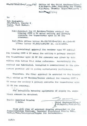 Snehankit has secured general approval from MAHADISCOM ( C. E. A ) for general installation of PowerTemple in the state of Maharashtra, India